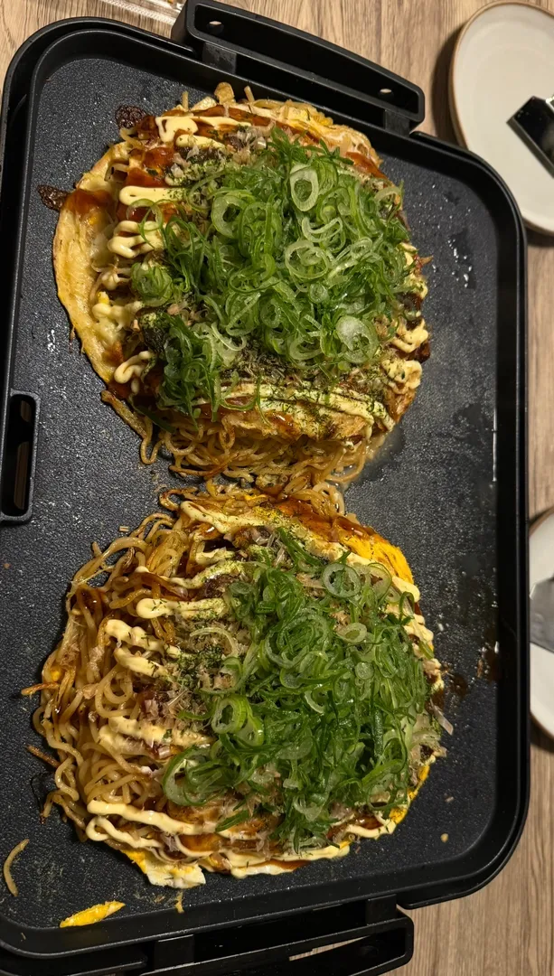 実家では毎週金曜日がお好み焼きの日で、家族みんな働いていたこともあり、具材とホットプレートだけ用意されてて、各自のタイミングで自分で作って食べてました。